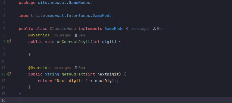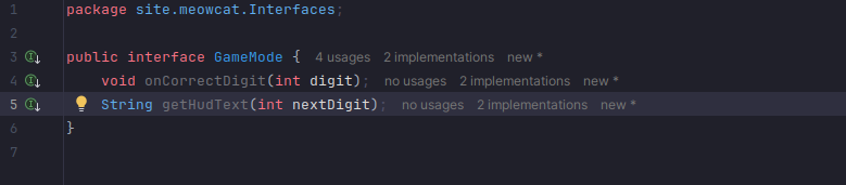 A new “Interfaces” package has been made in the code, containing a interface called “GameMode”